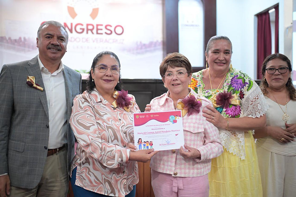 En el auditorio Sebastián Lerdo de Tejada, autoridades encabezadas por la secretaria de Educación de Veracruz, Claudia Tello Espinosa, entregaron reconocimientos a docentes por sus méritos y trayectoria e inauguraron en un área contigua una exposición fotográfica de la reseña histórica de la Dirección General de Educación Inicial y Preescolar titulada Autoridades educativas de la educación preescolar en Veracruz 1912-2024.